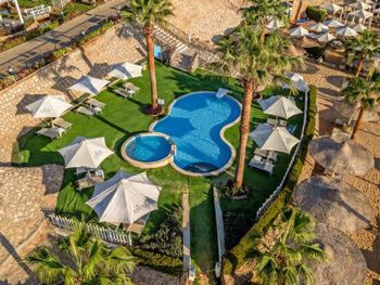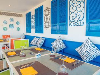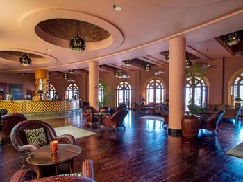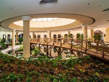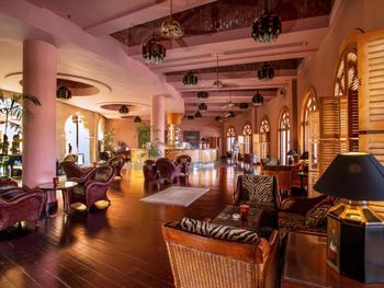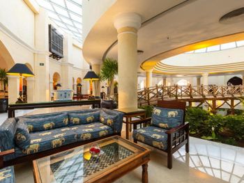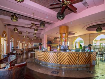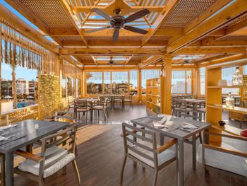 Отель откровенно старый. Вытертые деревянные детали лестниц, оцарапанные двери, старая сантехника - всё говорит о возрасте. Попытки выглядеть моложе за счёт модной ядовито синей подстветки положение не спасают. Ресторанов много, но работает только один и тот вечером. Днём - только два бара. Уборщики откровенно ленивые. Грязь по углам. На пляже украинцы едят пиво с сушеной рыбой. Воняет на весь пляж - всем пофиг. Напитки разбавлены.