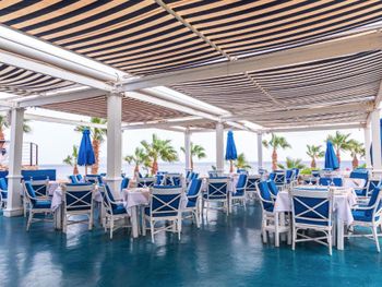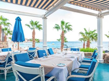 Из минусов: для меня совершенно была невкусная еда в основном ресторане Tirana. Всё было либо пережаренное, либо острое, либо кислое, либо вообще безвкусное. Один раз мне понравился ужин только, когда был рыбный день, тогда были и суши, и паста с морепродуктами и рыба, и всё было действительно вкусно. По поводу ресторанов "a la carte", то здесь тоже как повезёт. Например блюда в греческом ресторане Viva были не вкусные. В Seafood одно блюдо было очень жирное too much, другое нормальное. В итальянском ресторане Rosmarino были все блюда вкусные. В Hot rock на моё забронированное время не было свободных столиков и прождав 50 мин я ушла, так и не дождавшись столика. Также не очень хорошая информационная поддержка. Например я самостоятельный турист " без турагента" поэтому мне бы хотелось большего понимания как работает сервис отеля. Например, ты хочешь сдать вещи в прачечную, ты сам должен додуматься как заполнить бланк, куда звонить, так как кнопка на телефоне " laundry" не работает, и всё нужно через ресепшн делать. Везде нужно носить карточку от номера, так как её всегда нужно давать при заказах еды, даже в beach bar, об этом тоже не написано в правилах. По територии отеля мало указателей, куда идти. Когда я только приехала и пошла на пляж, то на обратном пути запуталась в какую сторону идти к моему корпусу. Таблички есть только перед самым корпусом, а как к корпусу идти от пляжа, неясно. Плохая анимация, например, два раза в день аниматоры (подростки) танцуют на пляже, при чём один и тот же танец, и так 7 дней я наблюдала этот танец (неужели нельзя больше танцев выучить). Один раз в день на пляже зумба, тоже неинтересно. И вообще нет никакой музыки ни на пляже, ни около бассейна. Хотя бы приглушенно, но музыка должна быть, хорошо что я взяла свой плеер, а то было бы очень скучно. Ну и моя рекомендация отелю, почему на пирсе нет вообще никаких бесплатных очков для плавания, хотя бы самых примитивных.
