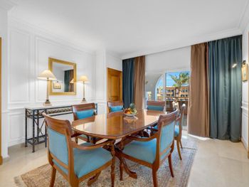 Очень красивая территория, и никакая пандемия на это, слава богу, не влияет! У нас был дипломатический люкс с видом на бассейн, и это тот номер, о котором можно только мечтать! Я считаю, что для отдыха семьи с ребенком это лучший вариант. Разные комнаты, прекрасный балкон, два туалета и очень удобные кровати! Понравились бассейны: два подогреваемых с разной степенью подогрева. Один теплый, второй - очень теплый. Удобный вход в бассейн.