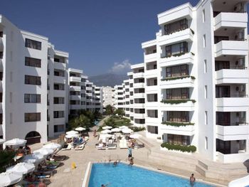 в 130 км от аэропорта г. Анталья, в 15 км от центра г. Аланья, в 20 м от пляжа (проход через дорогу по подземному переходу).