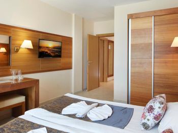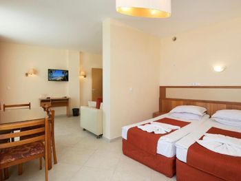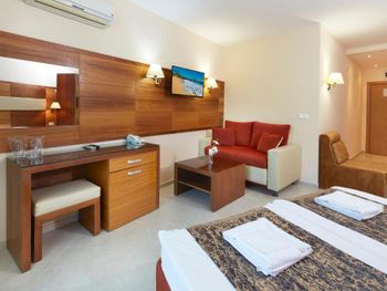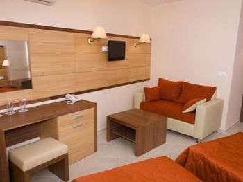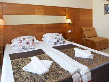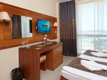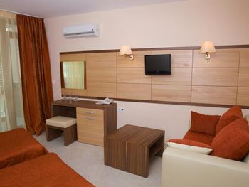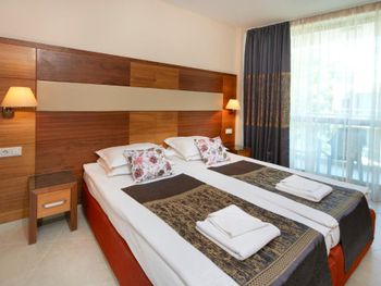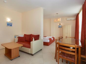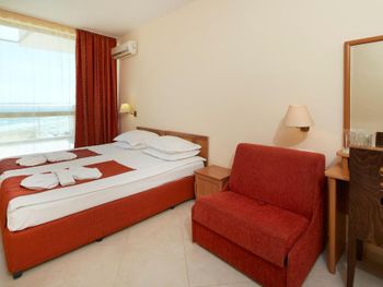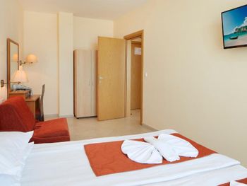 Я ожидала,что будет шумно , но то ,что будет шумно до такой степени даже не могла предположить.Разгуляево до утра с бомбической музыкой.Даже бируши не помогали.Это стоит учитывать при бронировании.Вид с балкона великолепный,но шум и крики перекрывают этот большой +.Также не понравилось,что оплату за номер при нимают только наличными,картой оплатить не получится,хотя об этом не говорится при бронировании.Снимать наличные с карты там очень накладно,поэтому пришлось оплачивать через онлайн-банк .Так же не понравилась еда,предлагаемая рестораном при отеле.Одно и то же,выбор маленький,даже банички не приготовили ни разу,ничего не поменялось за 12 дней,фрукты и арбузы зелёные,что особенно стыдно для солнечной Болгарии.Уборка номера каждый день,но очень не понравилось,что все номера и балконы моются одной и той же водой ,да ещё с хлоркой.Я не видела,чтобы вода в ведре менялась.