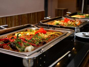 В ресторане накрывают завтрак, в меню ужина блюда по меню и "шведский стол". Покушать гости могут у бассейна.