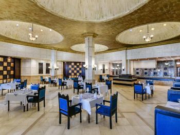 The main restaurant serves international open-buffet meals, while guests can also enjoy à la carte Italian and seafood dining, refreshing drinks at several bars, or a relaxing evening at the Sultana Café or on-site disco.