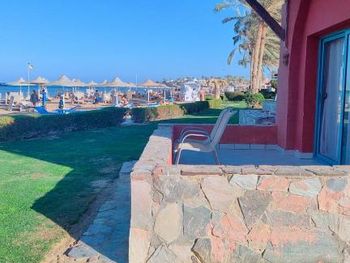 К сожалению, у отеля сменился хозяин (судя по смене названия). К сожалению - потому что в 2014 г. сам отель был более презентабельный. Халатов, тапочек и зубных щеток в номерах нет. Самое неприятное что обслуживающий персонал откровенно вымогает чаевые. Менеджер с рецепшн настойчиво навязывал нам номер, за который надо было доплатить (хотя у нас и так был забронирован фемили рум с террасой). В итоге мы все же согласились, т.к. домик стоял прямо у пляжа и вечерами здесь была идеальная тишина. Пообещал нам приветственную корзину с фруктами, но ее так и не принесли. Уборщик убрался один раз за неделю нашего проживания. Увидев что на чай ему не дали - в остальные дни формально заходил, приносил воду, по просьбе давал туалетную бумагу и все. Из еды на шведском столе всегда можно найти блюда по своему вкусу - большое разнообразие выпечки, фруктов, овощей и зелени. Отличный хумус с разными добавками и мягкие сыры. Вкусные свежеиспеченые лепешки типа питы. Рыба, мясо, курица в разных видах. На завтрак вкусные йогурты и хороший кофе из кофемашины. Но еда в ресторанах а ля карт - никуда не годится. Возможно мне так не повезло в обоих ресторанах. Единственное что было из морепродуктов - кольца кальмаров в ужасном жирном кляре. Есть это невозможно. Насчёт анимации - ничего сказать не могу. Мы стараемся выбирать места с минимальным количеством людей и обходим стороной шумные мероприятия. Муж ходил по утрам в тренажерный зал. Говорит что большинству тренажеров пора на свалку.. Мы едем в Египет исключительно ради моря и ищем максимальное уединение. В этой поездке удалось найти и то, и другое.