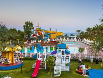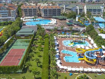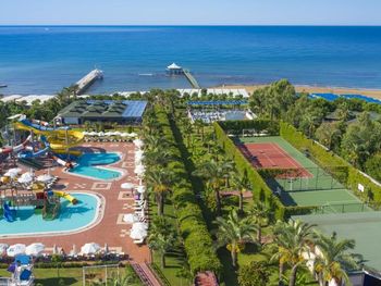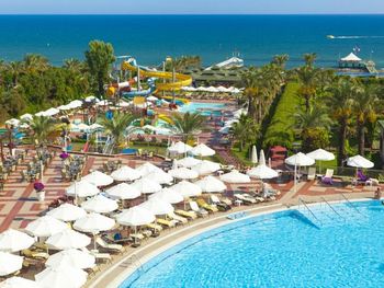 Курортный отель Hotel Turan Prince - All Inclusive расположен на берегу моря в Анталии. К услугам гостей песчаный пляж, удостоенный голубого флага, спа-салон, бассейн и элегантно оформленные апартаменты с кондиционером и меблированным балконом. В отеле работает аквапарк для взрослых и детей.