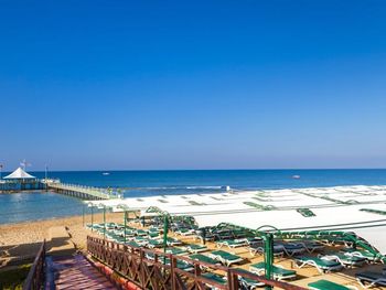 Уборка номера проводилась через день, пляж грязноват, еда однообразная. Кто едет с маленькими детьми не рекомендую купаться в бассейне, т.к. подхватили там коксаки вирус всего от одного пребывания. Очень многолюдно