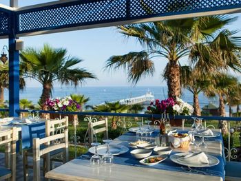 На завтрак гостям предлагают свежевыжатые фруктовые соки. В главном ресторане можно отведать блюда турецкой и интернациональной кухни. Также гости могут пообедать на открытой террасе ресторана с прекрасным видом на Средиземное море. В ресторане Garden Bistro представлено меню с различными блюдами.