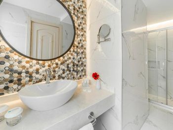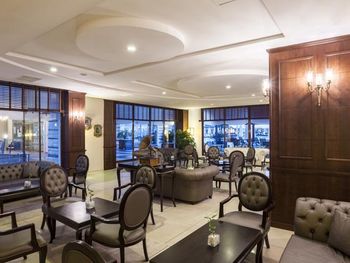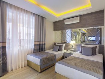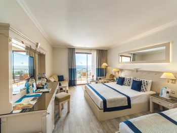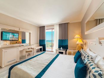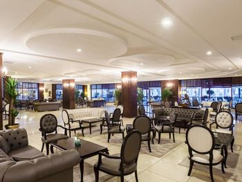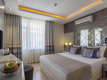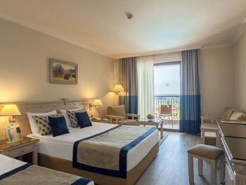 Шикарные номера отеля Hotel Turan Prince - All Inclusive стильно и современно оформлены в теплых тонах. Во всех номерах есть телевизор со спутниковыми каналами и мини-бар. В некоторых из них обустроен гостиный уголок. В отделанной мрамором ванной комнате с ванной предоставляются бесплатные туалетно-косметические принадлежности, фен и тапочки.