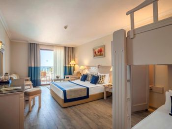 Начну с того ,что мне сразу не понравилось это разница в цене отличающая от букинга на 7 т .р ! Я понимаю,что курс у всех разный но не почти на 100€😄Сразу скажу территория отеля узкая ;( Проход на пляж через амфитеатр,или же через нулевой этаж! Отельные виллы находятся на 2 линии через дорогу от отеля ! Бассейн не маленький,но лежаков мало 😡Номера все как домик для кукол ) низкие потолки 🥲Уборка ужасная 🤬несмотря на то что каждый день оставляли чаевые ! Жили в корпусе D в здании с ресторанном ! Лифт 🛗 ждать приходится ! В здании частный запах т.к уборщицы видимо не моют половые тряпки по месяцу ! Еда отдельная тема ) Если вы как я едите только рыбу готовьтесь к тому что каждый день она будет сухая и солёная ) В целом вся еда очень пересоленная и выбор не велик ! Персонал в ресторане 3 из 10 баллов ! Анимация скучная ! Море чистое 🧼пляж песочный ! Заход удобный ! В целом отеле очень семейный если вы летите туда ради ребёнка думаю вы найдёте для него развлечения там ! В другом случаи не рекомендую данный отель 🏨 совсем !