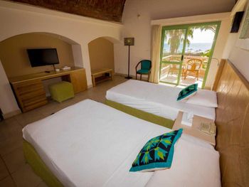 Прекрасный длинный пляж, мелкий песочек, пологий вход в воду, удобные лежаки на пляже. Прекрасное кафе на пляже, где подают освежающий и алкогольные напитки. Готовят в тандыре на углях вкуснейшую пиццу. Вкусная и разнообразная еда в ресторане. Обслуживающий персонал очень внимательный. Огромные номера с панорамным видом на море. Вся территория зелёная, много пальм и цветов. Ночью по периметру отеля ходит охрана. Очень тихо и спокойно. Не тусовочное место, сюда приезжают пары, чтобы отдохнуть в романтической обстановке, а также люди для занятия дайвингом и снорклингом. Здесь шикарные рифы, приплывает много черепах и дюгоней.