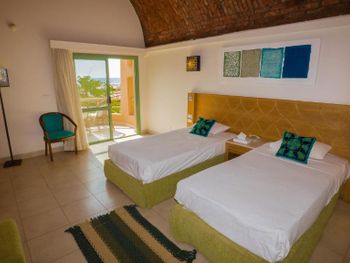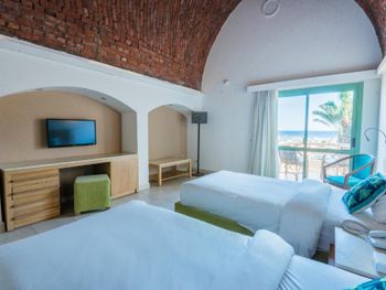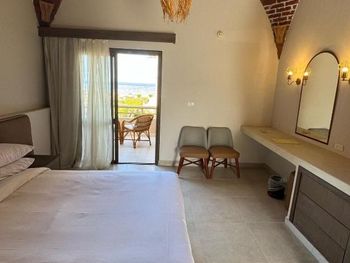 В отеле нет музыки и анимации - это создаёт уникальную камерную и релаксную атмосферу. Очень вкусное питание - поварам респект. Мясо, овощи, сладости, мороженное, живая пицца на пляже - все великолепно. Очень корректное и доброжелательное отношение персонала к гостям. Море просто потрясающее - один из самых красивый рифов в Марса Аламе с большим количеством черепах, которых можно встретить на небольшой глубине, дюгонь прямо в бухте отеля. Симпатичная архитектура в нубийском стиле - все очень компактно. Дворики между корпусами очень живописные. Номера с атмосферными арочными нишами и сводчатыми кирпичными потолками - очень атмосферно и необычно. Для тех, кто ищет тихого и релаксного отдыха, в котором много потрясающе захватывающего снорклинга - это идеальный отель.