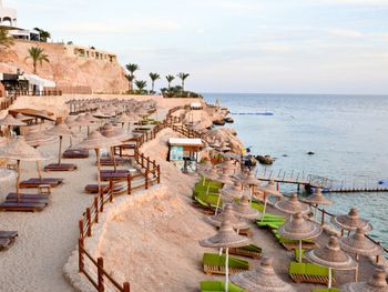 Расположен в 9 км от аэропорта и в 6 км от залива Naama Bay, на берегу моря, на побережье в Pasha Bay.