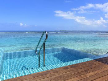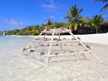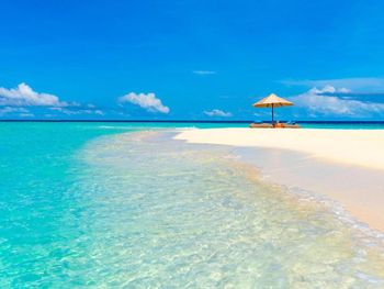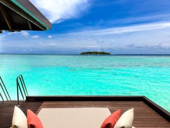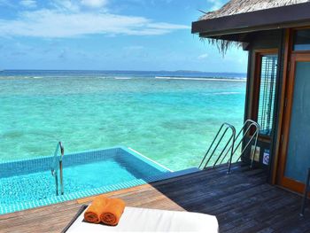 Мальдивского красивого моря и рифа где можно поплавать нет. Пляж очень маленький и плохо оборудован. Моря на пляже нет. это какой то залив больше похожий на бассейн.