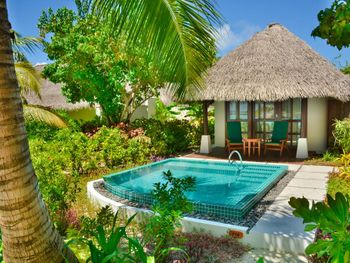 хорошее местоположение недалеко от аэропорта , отель предоставляет трансфер . классные коттеджи, идеальный белый песочек , океан в 50 метровой доступности , спокойно , чисто , очень вежливый персонал , вкусный завтрак , большая территория