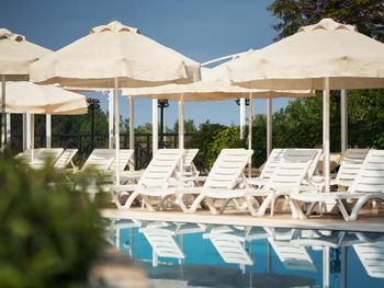 - недалеко от моря, собственный пляж с лежаками и зонтами (матрас отдельно оплачивается 1€)
