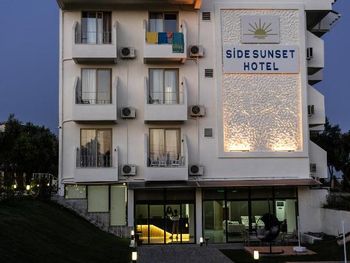 Side Sunset Hotel — это отель в городе Сиде, в 1,2 км от такой достопримечательности, как Общественный пляж Сиде. Среди удобств — сад, терраса, ресторан и бесплатная частная парковка. В распоряжении гостей отеля с 3 звездами — бесплатный Wi-Fi и круглосуточная стойка регистрации. К услугам гостей бар.