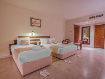 Старый отель, в которой большая часть номеров не прошла реиновацию. В номере было грязно и пыльно, уборка была не качественной и даже с чаевыми. Теннисные корты старые, отвратительный инвентарь, противно в руках держать мячи. Постоянно пристают с платным баром и спа. Цены в спа и баре выше чем в городе в 5-6 раз. Вообщем из развлечений плавать в бассейне и пить пиво, совсем скучно, не для молодежи… Сплошной обман и субмарина не стоит и 5$