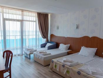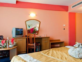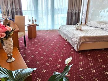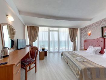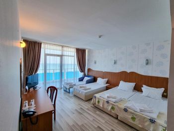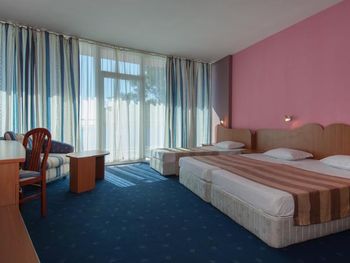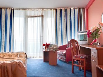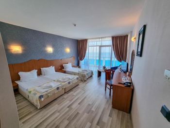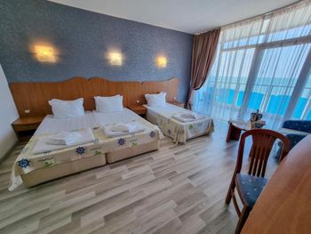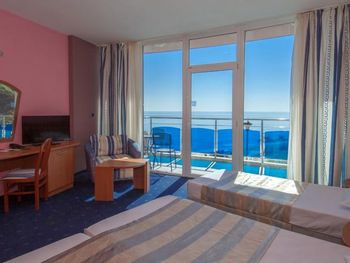 Нам не понравилась еда. Точнее она была очень простой , холодной..иногда было просто логически понятно, что недоеденную еду с обеда перемешивали и давали на ужин. НЕ БЕРИТЕ НАПИТКИ!!!! это просто смешана химия и ополаскиватели. Болгарский алкоголь можете попробовать лишь в качестве эксперимента, что бы убедиться в моих словах. Но не советую. В целом нормально.Но all inclusive это громкое слово. Так же бассейны были грязными , на улице бассейн ледяной. Поэтому мы купались либо в бассейне закрытом ( в спа), либо в минеральном. В спа большинство бань не работало, просто холодные комнаты. Мы останавливались в отеле на 3 дня, всё было нормально, но точно не восхитительно. Отель не рекомендуем. Видно что он изжил себя. Всё грязное, в номере воняло.оветские шкафы и кровати. В ванной душно и запах влаги. На кране раковины и на ручке двери плесень. Спасало лишь то , что мы здесь были на 3 дня , и в отеле были лишь ночью. Поэтому это всё не испортило нам отдыха. Шикарный вид с балкона на море и прекрасная погода спасало ситуацию !!