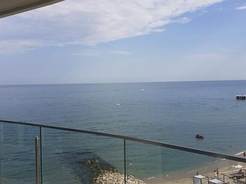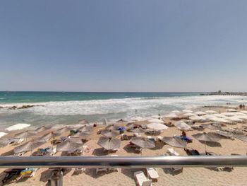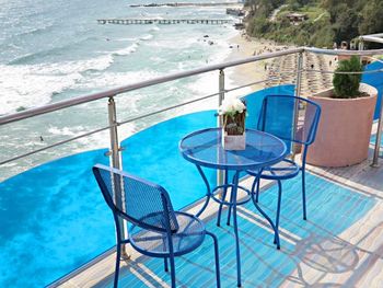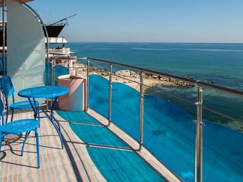 Номер с балконом и видом на море. После дождя вода стояла на балконе сутки. Разбито в мозайку одно стекло на балконе.