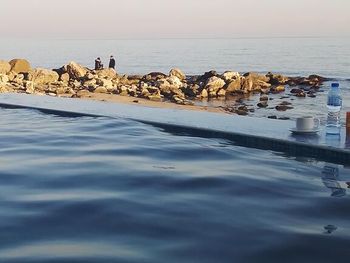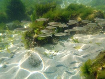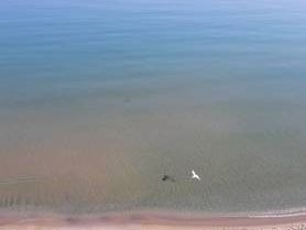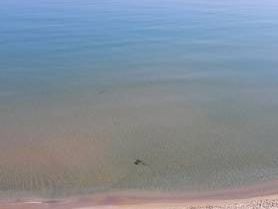 Море на пляже отделено от соседних пляжей камнями. Видимо поэтому трава которая прибивается к берегу никуда не уплывает. И ее много не только на пляже, но и в море. На соседних пляжах такого нет.