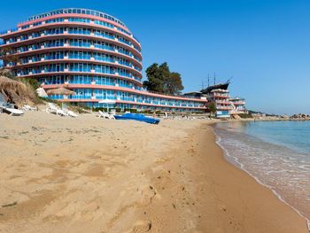 Спа-отель Sirius Beach с открытым бассейном расположен прямо на пляже. В отеле работают 2 ресторана, в том числе ресторан Ship, где подают морепродукты, а также блюда болгарской и интернациональной кухни.
