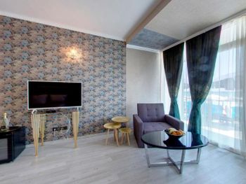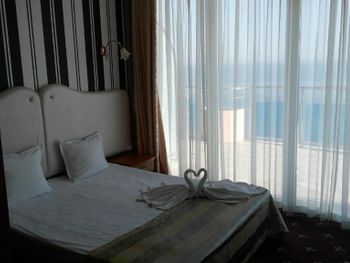 Расположение отеля, прилегающий пляж и вид на море с пятого этажа был потрясающий. Номер был тоже просторный, панорамные окна, кондиционер и холодильник в номере нормальные. Спа зона не плохая.