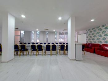 В столовой еду надо брать не самим, а стоять в очереди и показывать что ты хочешь, и тебе накладывает персонал. Это очень не удобно. Особенно когда в субботу был большой заезд, приходилось стоять в очереди минут 15-20.