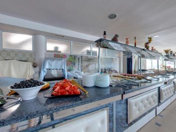 Еда . Это не только не ресторанное питание , это хуже столовой. Однообразное , невкусное меню. Могли на следующий день подать оставшиеся со вчерашнего остатки еды. Плохой, не соответствующий заявленному Бар, в котором присутствовала половина ассортимента. Отсутствие кондитерского стола. О никаком мороженом и десертах не могло быть и речи. Пример обеда : суп с фрикадельками, тефтели с рисом, нарезанные кусочки киви и старого апельсина, дряхлые дольки арбуза. Нет меню. Никто Вам не скажет что за предлагаемое блюдо лежит перед Вами . Создается ощущение , что в четырехзвездочном отеле из предлагаемых all inclusive и шведский стол не присутствует ни одного, ни другого. Они не понимаю ЧТО ЭТО ТАКОЕ - это и портит все впечатление об отеле !