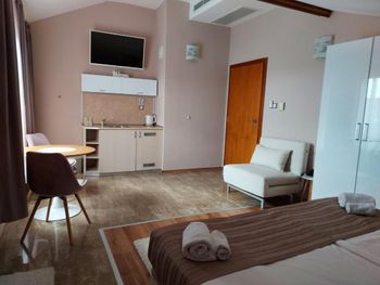 В распоряжении гостей Family Hotel Saint Nikola — гостиная зона и собственная ванная комната с душем, бесплатными туалетно-косметическими принадлежностями и феном. Также среди удобств есть кондиционер, телевизор с плоским экраном с кабельными каналами и сейф. Гостям Family Hotel Saint Nikola предоставляются постельное белье и полотенца.