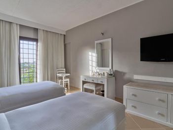 Комната была стандарт (ещё местные называют её Гетто :)), окна выходят на качегарку, стоит гул ночью, кондиционер приходилось переключать вилкой, слишком тяжело, слив еле спускает, ступеньки очень забадали, они везде, отель не рассчитал то, что очень много людей с детскими колясками. А обход ещё надо где-то найти. Да и, кстати,структура отеля не для людей с топографическими проблемами. Ещё огромный минус стандарта - нет балкона, негде сушить вещи, кроме как на стульях или в туалете, где они естественно не высохнут.