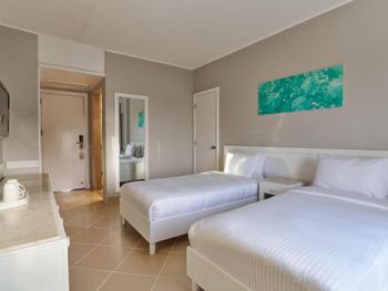 Попросили поменять комнату, чтобы меньше было заморочек со ступеньками. Нас спустили на один этаж ниже точно в такую же комнату, также выходит на качегарку, стоит гул. По телефону менеджер сказал, что комната несомненно лучше. Из лучшего в комнате: переключатель кондера работает руками, слив работает лучше, кровати при чек-ин просили отдельные, но дали одну при смене номера и мне приходилось с мамой делить кровать и ребёнок между нами, когда не спит. Чайник течёт, уровень уборки на уровне 2хвездочного отеля, на кровати были волосы. Нас поселили в одну из смежных комнат с дверью между двумя комнатами. В соседней звонит телефон и нам всё слышно. Слышно их телевизор ночью, когда уже все спят. Интернет отвратительнейший, если бы была ещё более сравнительная форма этого слова, я бы её применила. И это не потому что он типа везде такой, я живу в Египте, он не везде такой, в прошлую поездку в другой отель был шикарный интернет, где я даже фильмы качала и смотрела. Ещё в старом номере ТВ с флешки не демонстрировал фильмы, в новом номере она заработала, вуаля, это несомненно победа....