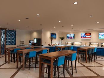 Странная система "круглосуточных ресторанов". Приехали поздно в 15.00, до 16.00 заселялись и распоковывались, когда собрались пойти поесть, все 5 ресторанов были закрыты до 18.30. При вопросе, как же так? ответили, что подают только снеки на пляже. Куда идти не хотелось, было ветрено и холодно и есть непонятные "снеки" тоже. В лобби баре подают ужасные типо алкогольные коктейли. Просьбы принести хотябы чипсы или орешки, оливки, как в любом нормальном отеле, отвечали, что они будут с 18.30 в другом месте. Полный бред. Никому не рекомендую такую ссистему "типо все включено". Благо были одну ночь.