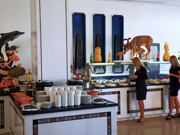 Свободный стол надо было поискать, не всегда получалось сесть за стол, приходилось гулять по залам с тарелками. Бармены не всегда были вежливы и приятны!!! Бокалов и стаканов чистых часто не хватало!!!! Раздражало и мешало спокойно кушать наличие птиц в ресторанах отеля (главный и пляжный рестораны). В пляжном ресторане воробьи спокойно клевали еду, предназначенную для гостей отеля, а повара не обращали на это внимания!!!!! А-ля карт ресторан индийской кухни Indian Restaurant ужасен, еда вообще ни о чем!!! Не стоит тратить время! Фитнесс центр очень маленький, всего одна беговая дорожка, мало тренажеров. И создалось такое впечатление, что этот спортивный зал предназначен для местного обслуживающего персонала!!!! Там, в основном, занимался главный аниматор, практически постоянно, вместо выполнения своих прямых обязанностей, и другие люди арабской национальности без браслетов. И вели себя там очень громко, как будто это их личный тренажерный зал, а мы пришли им мешать.!!! Было не приятно приходить туда для тренировок!!!!