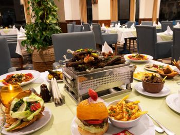 Свободный стол надо было поискать, не всегда получалось сесть за стол, приходилось гулять по залам с тарелками. Бармены не всегда были вежливы и приятны!!! Бокалов и стаканов чистых часто не хватало!!!! Раздражало и мешало спокойно кушать наличие птиц в ресторанах отеля (главный и пляжный рестораны). В пляжном ресторане воробьи спокойно клевали еду, предназначенную для гостей отеля, а повара не обращали на это внимания!!!!! А-ля карт ресторан индийской кухни Indian Restaurant ужасен, еда вообще ни о чем!!! Не стоит тратить время!