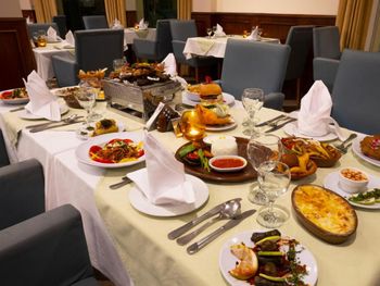 Питание было очень хорошее, разнообразное и вкусное!!!! Но свободный стол надо было поискать, не всегда получалось сесть за свободный стол, приходилось гулять по залам с тарелками. Бармены не всегда были вежливы и приятны!!! Бокалов и стаканов чистых часто не хватало!!!! Раздражало и мешало спокойно кушать наличие птиц в ресторанах отеля (главный и пляжный рестораны).