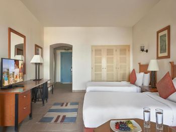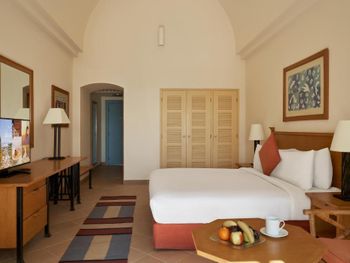 Не оправдано 5 звезд,максимум 3 звезды.Влажная уборка номера за весь период не была проведена вообще ни один раз, пыль не вытиралась,зеркало было забрызгано и не протиралось,полотенца если не были брошены на пол, просто аккуратно были сложены,но не поменялись. Вся уборка заключалась в уборке мусорных корзин. Отдельный разговор о питании в столовой: каждый день одно и тоже меню утром, в обед и вечером.еда на 3-ку, рестораны не работали, поэтому другой альтернативы питания кроме столовой не было,у нас было все включено,а как выживали люди с одним завтраком я не знаю.У бассейна кроме напитков не было ничего,хотя было заявлено перекус, ребенку брали еду с собой из столовой, потому что с утра пила чай с бутербродом, а к 10-11 часам после купания в бассейне хотела кушать, а взять еду было негде. Неприятно удивили правила купания в бассейне, из бассейна всех просто выгоняли в 18.00. С 14.00 до 17.00 на открытом воздухе при 40 градусной жаре находиться было невозможно, все выходили к бассейну в 17.00, а в 18.00 когда жара спадала и все хотели купаться, приходили уборщики бассейна и всех просили покинуть бассейн. Было очень грустно находиться у моря и не иметь возможности в нем плавать, т.к. никто не позаботился о расчистке входа в море от кораллов.Многие отдыхающие после первой попытки попасть в море выходили с порезанными ногами, поэтому в такую жару море было свободным от отдыхающих, а 2 бассейна переполнены людьми, в один из дней при большом наплыве отдыхающих я посчитала людей в бассейне, их было 78 человек, это просто ужас. Отель старенький, мебель сильно уставшая,хотя к самому номеру по размеру и расположению мебели претензий нет. Я хоть и оптимистично отнеслась ко всем этим неудобствам, но больше в этот отель я не приеду, он не стоит тех денег которые я заплатила.
