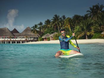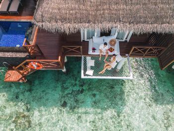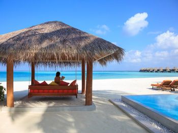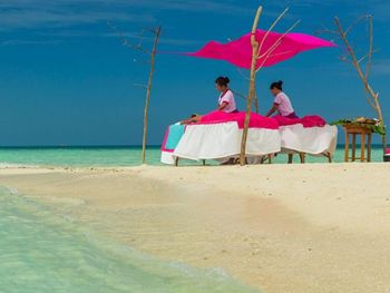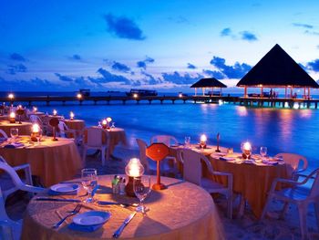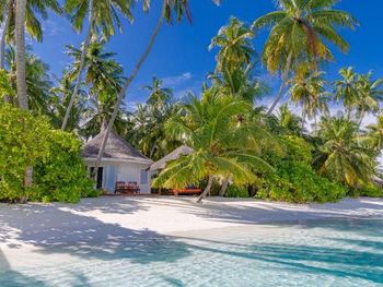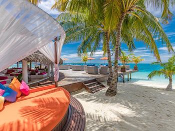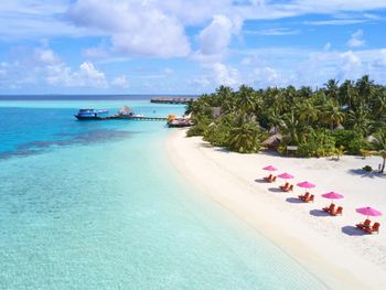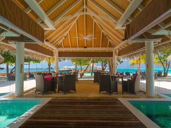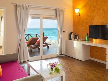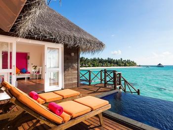Очень не рекомендую отель. Для нас это уже шестой отель на Мальдивах. Сравнить есть с чем. Отель заманивает неплохой ценой - но потом Вас отпылесосят на деньги по полной программе. Налог на любую покупку -30 процентов сверху к цене в любом прайсе. Очень плохое питание. Этот отель брали на завтраках и для нас ужин превращался в настоящий квест. В ресторане с видом на море "Спайси" запись на ужин за 2 дня и стоимость 240 долларов и это без Вина. Ресторан Веллдан находится в кустах, так же под запись, но и с блюдами беда, два раза делали возврат, готовить не умеют. В отеле было много русских, у всех про питание сложилось похожее мнение. Если заказать что то в номер на ужин + бутылочку вина, то вам через час принесут еду, потом еще через час принесут вино и еще час вы будете ждать сотрудника со штопором, и так было 3 раза, все романтические вечера были сорваны. Большая часть Вина указанного в меню-отстутвуют. Закажите одно - принесут другое и в полтора раза дороже чем вы просили, в среднем рассчитывайте минимум на 100 долларов за бутылку. В указанное время 2/2 часа единственный магазин и то не работает - у продавца намаз и сделать они ничего не могут, на предложение исправить график работы под молитвы - разводят руками. Взял напрокат одни только ласты на 4 дня для нас двоих - 122 доллара за аренду! Все для снорклинга в других отелях бесплатно или за символические 1-2 доллара в сутки. Час массажа 200-250 долларов ( в других отелях по 100-120) и поэтому бедный персонал бегает по пляжу и зазывает людей сходить за конский ценник в спа. Под конец не выдержал и высказал все их питание и все остальное, поговорили с администрацией, так они даже не исключили блюда из чека которые мы вернули, убрали только когда отказались платить перед выездом. Никаких попыток исправить о них мнение даже и не предпринималось. Если будете жить в виллах на воде -ходите в шлепках, часть досок сгнило и торчат гвозди.