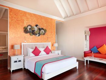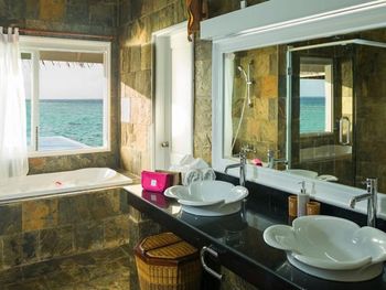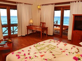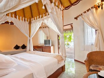 Уборка в номерах очень плохая. В аква сьют на воде который является одним из самых дорогих после ходьбы в номере при заселении ноги были черные. Наличие или отсутствие чаевых на качество уборки не влияет. Массаж очень слабый и на мой взгляд не стоит 145$ в час которые берут. Сестра брала 3 сеанса и несмотря на различные названия массажей делали одно и тоже. Дорогой перелет на гидросамолете на 4 человек. Брали тариф все включено, но чтобы его окупить надо весь день проводить весь день в бассейна у бара. Хотя некоторые семьи так и делали. В ежедневный минибар входит 2 бутылки пива и фанта с колой. Несколько раз пользовались возможностью перекусить снеками с 15 до 17ч. что также входило в наш тариф. Также во все включено входят посещения ресторана и бара a la carte, но меню которое там предлагают также как и шведский стол в основном состоит из карри.