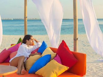 1.у нас была вилла на пляже без бассейна.Виллу дали не далеко от бара Наутилус.С вечера 20-21 до 00:00 орала музыка.Жуткая долбежка,тряслась вся вилла.Спать просто было невозможно. 2.попросили два одеяло,вместо одного,не дали. 3.напротив виллы,прям впритык была волейбольная сетка,вместо того чтобы смотреть на море(которое оказалось давольно далеко из за того что около этой виллы был большое песчанно коралловый берег)приходило слушать матерные слова от играющих в волейбол!За такие деньги приехать в такую даль,и слушать этот мат и смотреть на играющих прям перед носом!? 4.очень медленный интернет.даже фотку отправить занимает ужасно много времени. 5.вилла довольно не опрятная.Какие то жирные пятна на покрывале.Грязные стол и раковина все облупилась.Баночки из под геля и шампуня все разбитые.Вообще не понимаю,почему бы не обновить ремонт?вилла совершенно не уютная. 6.опять таки перед виллой все время то кино смотрели,то свадьбы устраивали,никакого отдыха и уединения не было. 7.было очень много детей,маленьких,очень много криков. 8.в море есть гамак.но когда мы до него доплыли,оказалось что он весь рваный!даже сесть нельзя! 9.за день до выезда прислали письмо,когда и во сколько выезд,завтрак и так далее.в 5 утра должен был быть звонок-будильник,его не было.гидросамолёт в 6:15.Мы приходим как указано в письме в 6 на рецепшен,а нам говорят что вылет то у нас в 6:45!типа че вы так рано пришли!в итоге гидросамолёт полетел только в 7,ещё заезжали в другой отель,за другими.В аэропорт мы приехали за час до вылета!!!!А ведь мы даже ещё не вошли в аэропорт!просто приехали!на вход в аэропорт жуткая очередь,пока прошли ее,пока сдали багаж и зарегистрировались,потом очередь на паспортный контроль!мы попали в зал вылета только за 5 мину до начала посадки!Усталые,злые, и перенервничали,чуть не опоздали!за три часа надо привозить в аэропорт,раз там такие очереди!