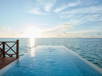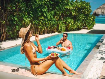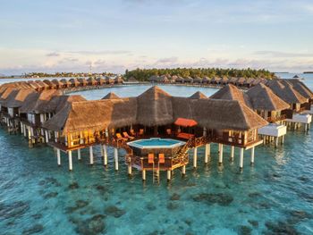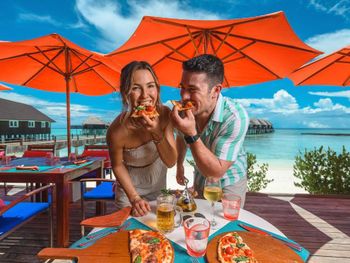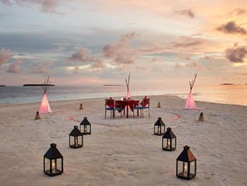 Еда нереально однообразная и с уклоном в индийскую кухню Завтраки надоедают на третий день потому что вообще ничего не меняется. Были в Аля картах - дорого и глупо, оно того не стоит. Готовить точно умеют, потому что на персональном ужине на берегу все было просто великолепно и по подаче и по вкусу Из минусов можно отметить очень уставшие виллы на воде и вид на стройку на sunrise стороне острова. Так что если планируете поездку, советую брать виллу с бассейном на sunset стороне острова