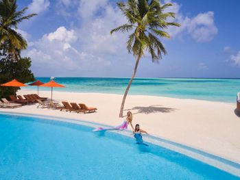 Это больше детали, но все же они немного портят общее впечатление: Рядом с островом расположен другой местный жилой остров, где какие то вышки, строительство и т.д., что для отдыха на Мальдивах малоприемлемо по-моему. Хорошо мы получили номер на противоположной стороне, но лучший снорклинг был именно там, где был жилой остров... Прямо на нашу часть пляжа была вынесена огромная труба для намывания песка на берег. Наверно это нужно делать, но опять же это не придает шарма отдыху (может ее нужно закапывать в песок, чтоб она не пересекала пляж сверху).. Для дайверов и снорклеров - учтите, что домашний риф весьма обычный (для Мальдив очень средний), да и рифы вокруг для дайвинга Вас не сильно удивят - средне. Хотя вполне можно сьездить и поплавать с китовыми акулами и мантами - у нас это получилось (детям очень понравилось). Плюс вода средней прозрачности для Мальдив (метров 30 максимум, а то и меньше), не самая чистая, возможно это связано с сезоном.