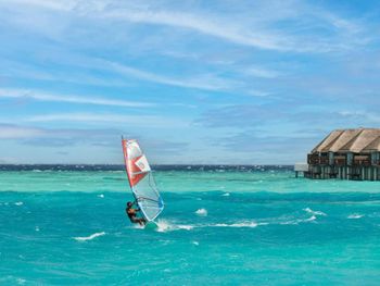 От курортного отеля Sun Siyam Vilu reef можно за 35 минут добраться на гидросамолете до международного аэропорта Мале.