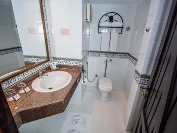 В отеле в основном невкусная еда. За каждый прием пищи получилалось найти только что-то одно съедобного вида. Нельзя оставить тарелку с едой, ибо либо воробьи, либо вороны, либо официанты утащат. Весь отель старый. Ночью, когда был сильный ветер, гремели двери (балконная и входная) так, что было невозможно спать. Очень сильная слышимость в номерах. Сначала нам вообще дали номер в какой-то коморке, потому что ощущение было, что находишься в каком-то сарайчике. Решили возвращать деньги. В итоге менеджер дал номер в другом отеле Palace, и мы остались. Вай фай ужасный. Бемплатный можно словить только в лобби, но даже если поймается, любое сообщение в Вотсапе отправляется секунд 30. В итоге купили платный. Но и это не спасло. Пользоваться им можно только на одном устройстве. Сильно тормозит, а то и вовсе пропадает. Из за плохой защищенности сети, половина сайтов не работает.