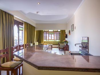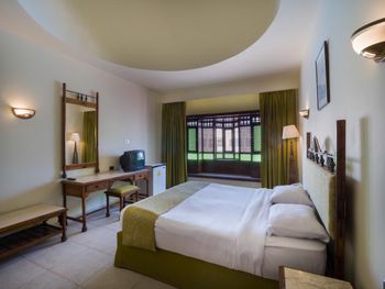 Номер не соответствовал заказанному, в желаемый переселили только за взятку.Все равно было две кровати вместо заказанной одной двухспальной. Еда однообразная и уровня столовой, к тому же нужно выпрашивать больше ложки блюда.Все что выше уровня моря -все плохо