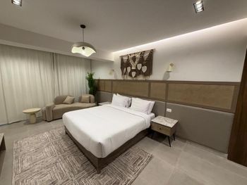 +Хорошее местоположение: рядом много магазинов, сувенирных и продуктовых, фрукты +Близко к аэропорту и остановке автобуса go bus +Есть очень красивый коралловый риф, много рыб +Выбор еды не очень большой, но все вкусно +Отливы есть, но не критично, глубина всегда есть за рыбным рестораном, плавать можно в любое время +Номер с реновацией приятный, все свежее.