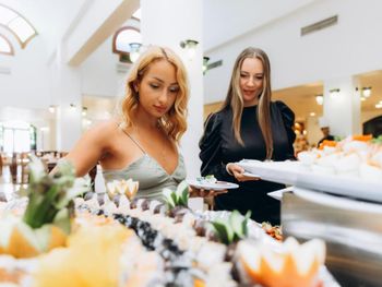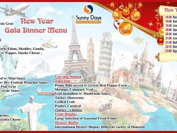 В курортном отеле Sunny Days по вечерам проходят тематические вечера, посвященные восточной тематике и включающие танцы живота, танцы тановара и живую музыку. Гости могут заказать кальян в ресторане Oriental Corner. В ресторанах подают блюда интернациональной кухни, деликатесы из морепродуктов и пиццу.