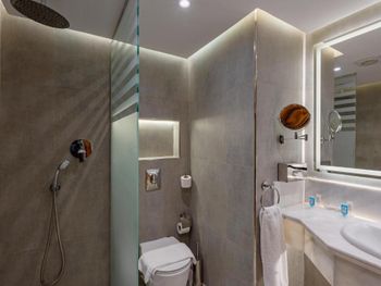 Обшарпанные номера с маловатой для ребенка ванной комнатой. Пакетики с чаем и Нескафе кладут на старый стол, а не на специальную тарелку, как будто это брошенные на улице пакеты. Матрасы на кроватях грязные, плохие. лечение, худшие виды питания, а ресторан похож на учебный центр для солдат. За каждым видом еды стоят очереди. Плохо то, что ресторан и заведующая общепитом непрофессионально относятся к гостям и относятся к ним жестко. не позволяйте им выходить из ресторана с тарелкой с плохими сладостями или едой из-за присутствия детей, которые иногда хотят есть в другое время, чем указано в ресторане. Свежевыжатых соков нет, и что забавно, они добавляют воду. к молоку. В автомате Нескафе нет перекусов, кроме очень тонкой пиццы, размером не более половины ладони и сделанной из непеченого теста. У грузчиков нет тележки для перевозки причитающихся сумок. к отсутствию лифта, так их тащат насильно. Наконец, менеджер, когда ему жалуешься на эти негативы, - это максимум, что он делает, оправдываясь тем, что заключенный тут ни при чем... The rooms are worn out and have a bathroom that is not big enough for an infant. They put tea bags and Nescafe on an old table and not on a special plate, as if they were bags thrown in the street. The bedding is dirty, bad treatment, the worst types of food, and the restaurant looks like a training center for soldiers. There are lines of people for every type of bad food. The restaurant manager and the staff are unprofessional in dealing with the guests and they prevent them in an offensive way from leaving the restaurant with a plate of some bad sweets or food because there are children who sometimes want to eat at times other than those specified by the restaurant. There are no fresh juices, and the funny thing is that they add water to the milk in the Nescafe machine. They have no snacks except for a very soft pizza that does not exceed half the palm of the hand and is made of unbaked dough.