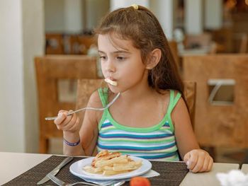 Отдыхали в 2х отелях одновременно, поэтому есть с чем сравнить (делали обзор и сравнение): питание конечно в этом отеле скудное. Голодными не будете, но если хотите лучше сервис и питание, точно не сюда. Здесь к Вам подходить за ужином не будут и спрашивать пожелания, приносить воду, чай, вино)) никто не будет. Сервис =0. Все сами. Мебель в главном ресторане подуставшая и ощущение большой столовой, с плохой уборкой и пластиковыми тарелками. Нет уюта. Хотя может кому то нравиться шум ложек и вилок, тогда Вам норм).