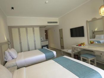 Сам номер требует капитального ремонта и обновления мебели. Очень навязчивый персонал. Напрягало, что в столовой, постоянно нам хотели поднести/донести еду и напитки. На территории отеля много разных услуг и магазинов, и они не отставали пока ты что то у них не приобретёшь. Первые дни вообще невозможно было спокойно полежать на пляже. Простого, нет спасибо нам не нужно, было недостаточно.
