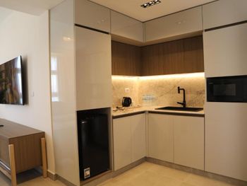 Хороший выход в море для тех кто с детьми очень хорошо . Персонал на ресепшен да и во всем отеле прекрасен ! Всегда помогали в любых вопросах.